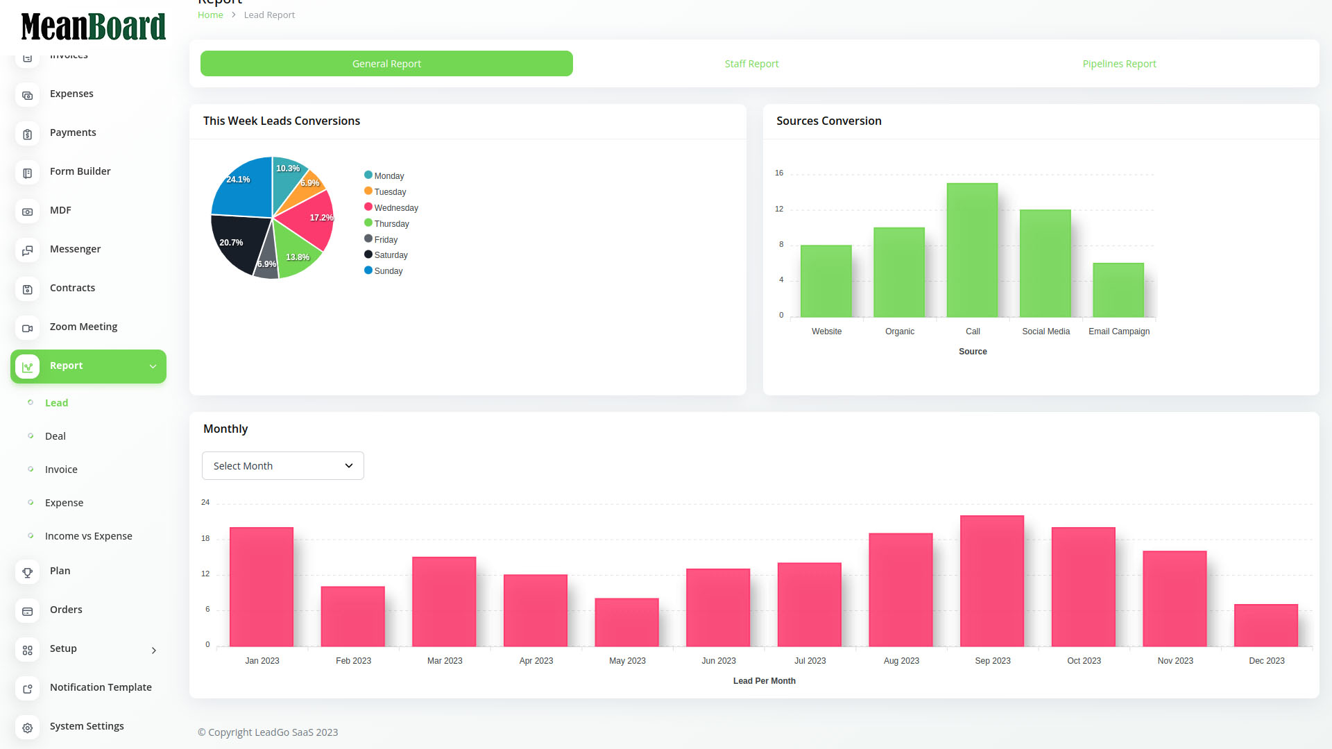 Monitore your weekly leads conversion and your monthly business grow.