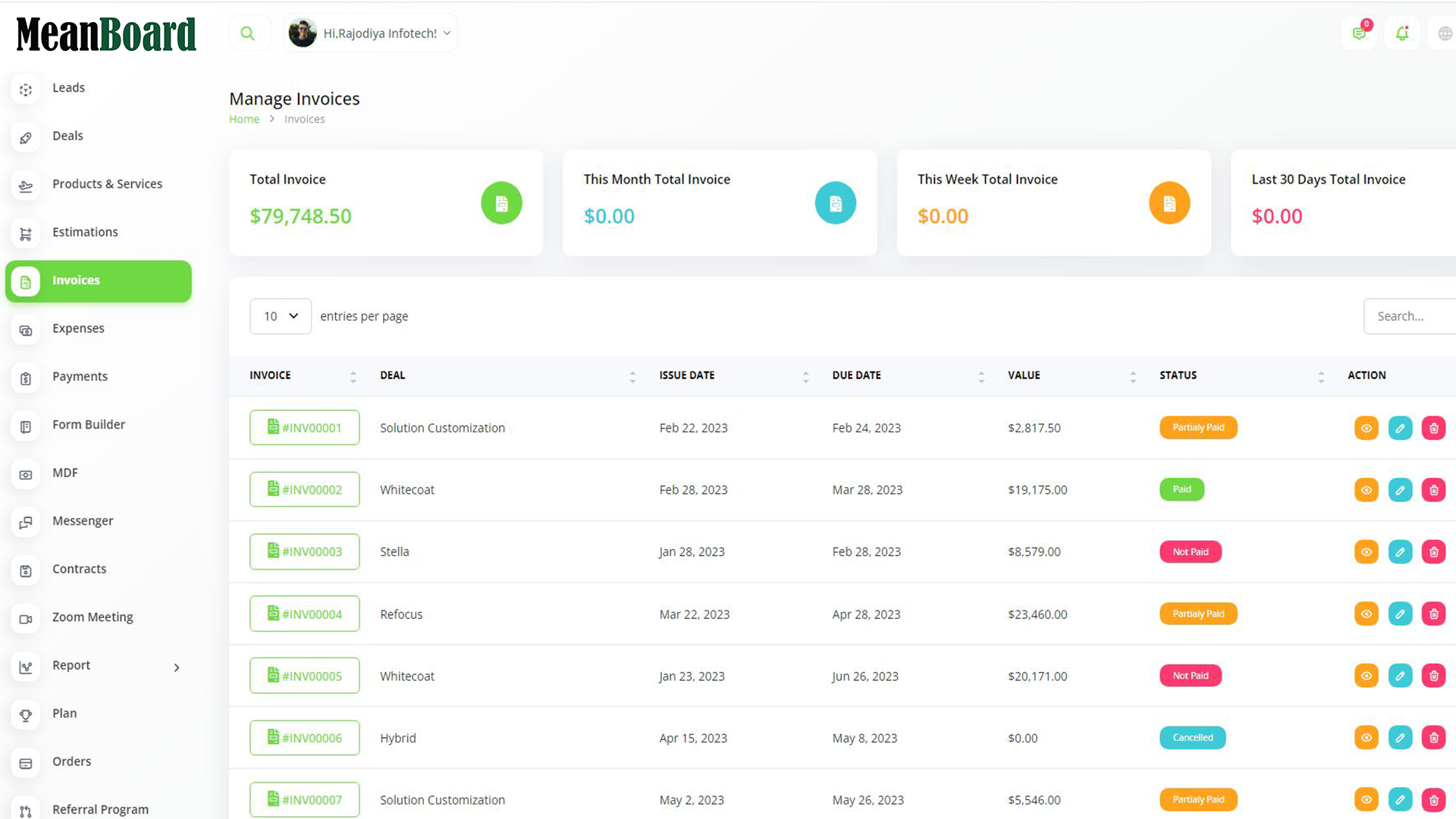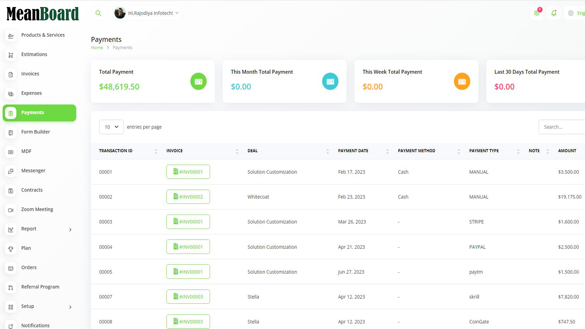 MeanBoard makes it easy to turn leads into clients and manage sales.